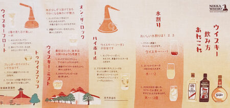 お土産で頂いたニッカウヰスキー飲み方あれこれの手ぬぐいです。