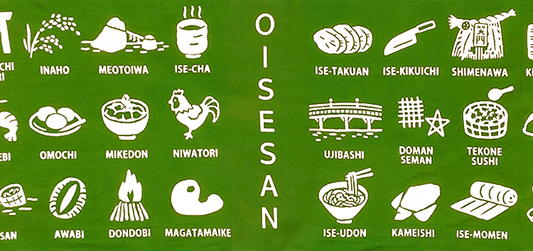 三重県の伊勢神宮に行った時の外宮のお土産屋さんで買った手ぬぐいです。